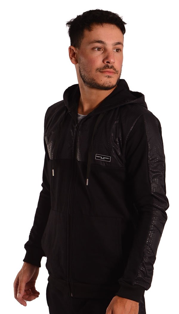 Esta campera tiene que ser el nuevo comodín de tu armario. Por sus clásicos colores, permite múltiples combinaciones y ocasiones de uso, ¡desde un look más casual a uno bien deportivo! Está confeccionada con rústico de algodón, con canesú y recortes de nylon negro print Oporto en las mangas. Cuenta con bolsillos canguro, cierre desmontable y cordones regulables en su capucha. La cintura y los puños son de ribb para mejor ajuste.