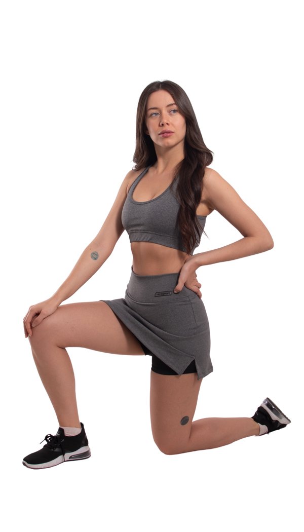 ¡La falda con Short Margaret es nuestro item favorito de primavera-verano! Su diseño de tiro alto, cintura ancha y pequeñas aberturas laterales la hacen irresistible. Está disponible en negro, gris melange y en dos nuevos colores. La falda está confeccionada con lycra, mientras que el short interno está hecho de micro liviana. Esta combinación está pensada para que la falda proporcione la estructura necesaria y el short ofrezca la comodidad ideal para tus entrenamientos.