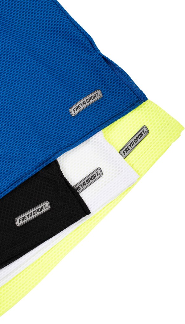 Amarillo Fluor, Azul Francia, Blanco, Negro