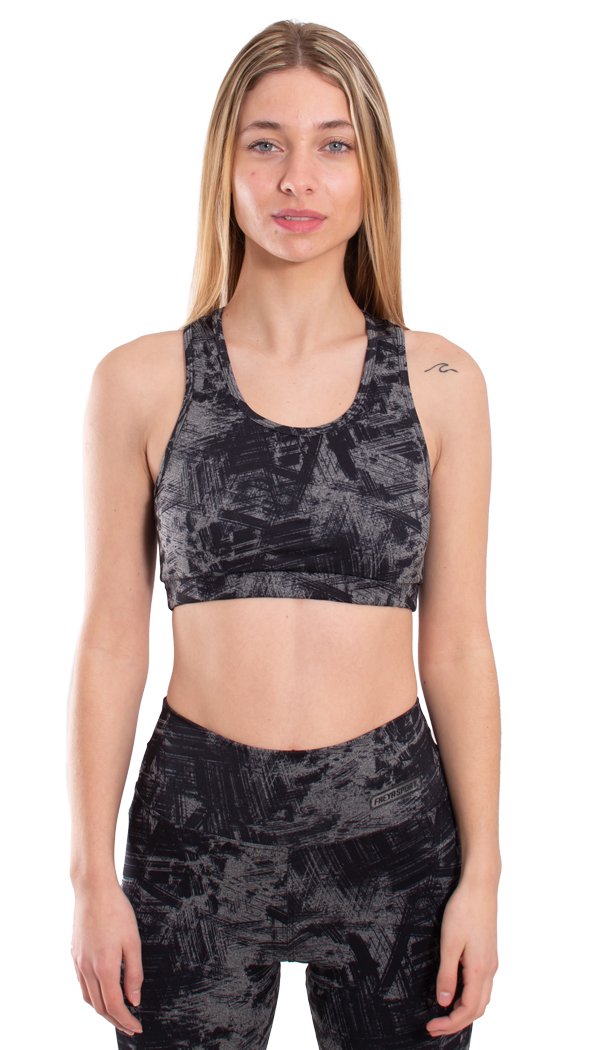 Nuestra clásica línea de lycra gris sublimada le da la bienvenida al top Nilo: un diseño original de Freya Sport. Su frente de escote cerrado se combina con una espalda semi descubierta, mitad deportiva con una estructura de doble tira que aporta sostén y sensualidad. ¡Usala en conjunto con la leggins Nilo!